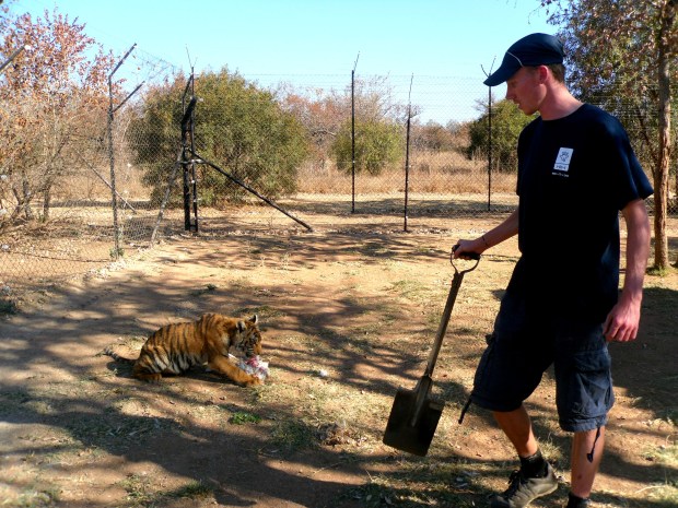 As fantastic as this all sounds, working with animals isn’t all playtime and cuddles and is obviously going to come with some mucky jobs.  Hauling dead chickens out of the freezer for the big cats’ dinner wasn’t very pleasant so I left this job to Alex as I’m sure he loved pulling frozen chickens out of a huge pile to find that only a head or a foot had come off in his hand!