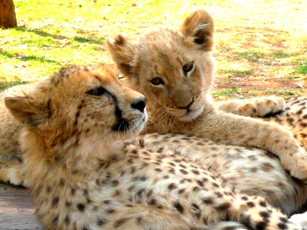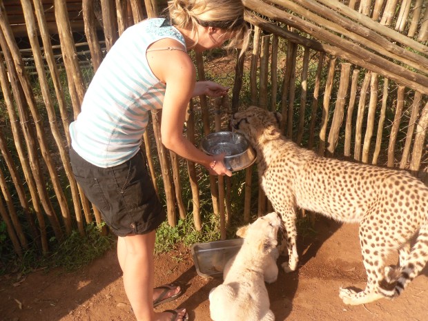 After a short drive out of the city and into the bush in the back of a dusty truck, I found it hard to believe what I was seeing.  Inside a fenced off area a group of people were sitting on a picnic bench chatting away and…wait…what…this can’t be right…several lion cubs and two full grown cheetahs sitting within a few feet of them?  Was I seeing things?!