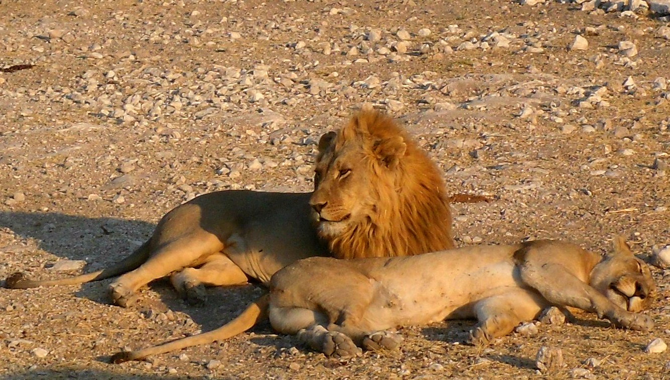 This photo of a male and female lion relaxing together was taken in Etosha National Park in Namibia. Even though Etosha is not as well known as some of the other African national parks, it was one of our favourites as the animals were in abundance.