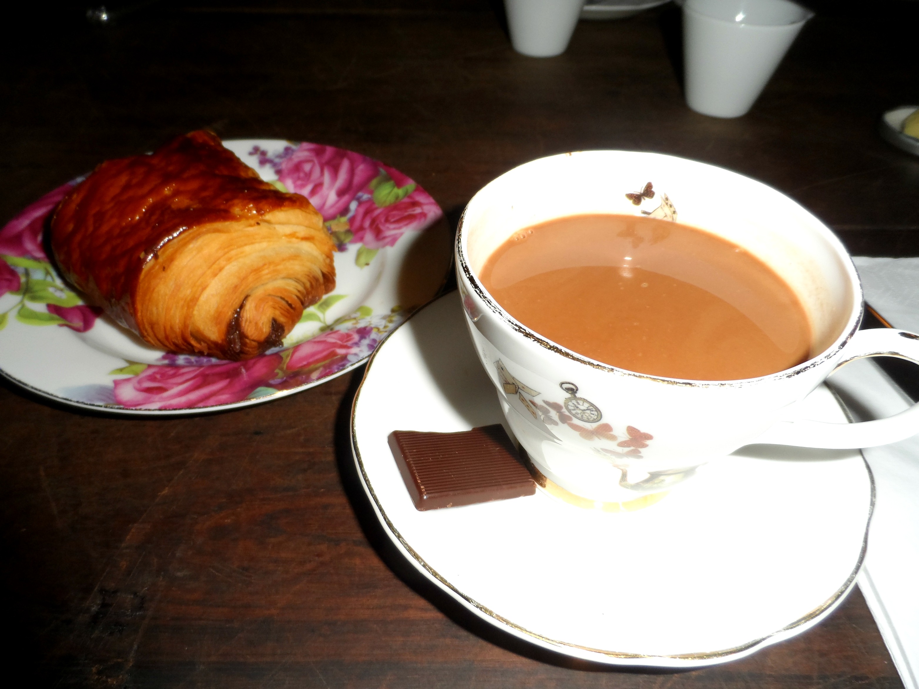 We started out with a deliciously thick hot chocolate and chocolate croissant in Sketch where Jen told us a bit about the history of chocolate, her chocolate filled background and the proper way to taste chocolate (you don’t look like quite as much of an idiot as you do at wine tasting!).