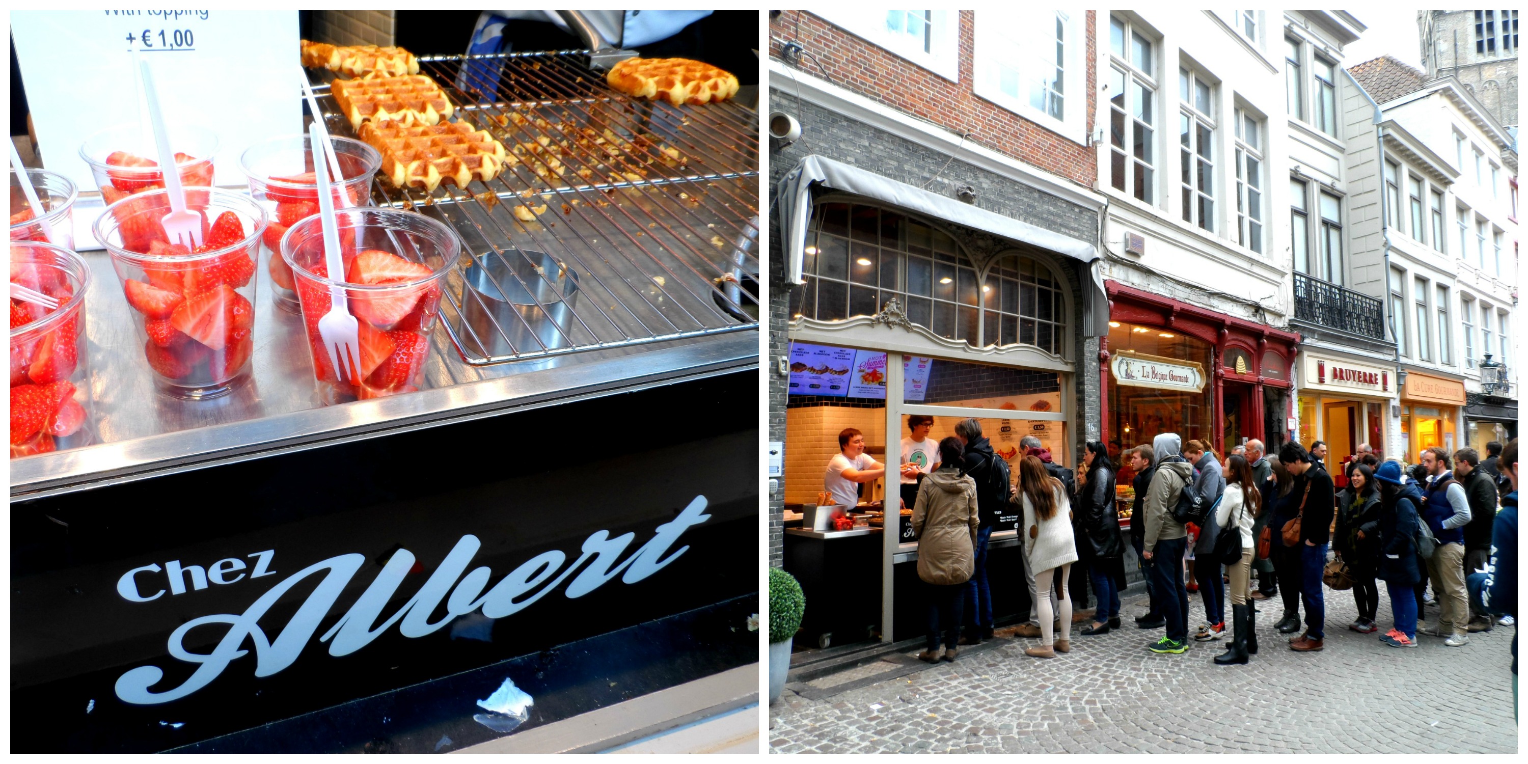 Chez Albert had a huge long line of people every time we walked past, all eager to get a bite of their waffles, and the wait was definitely worth it.  I’m pretty sure my sugary Liege waffle with hot cherries, cherry sauce and whipped cream was the most amazing thing I have ever tasted!