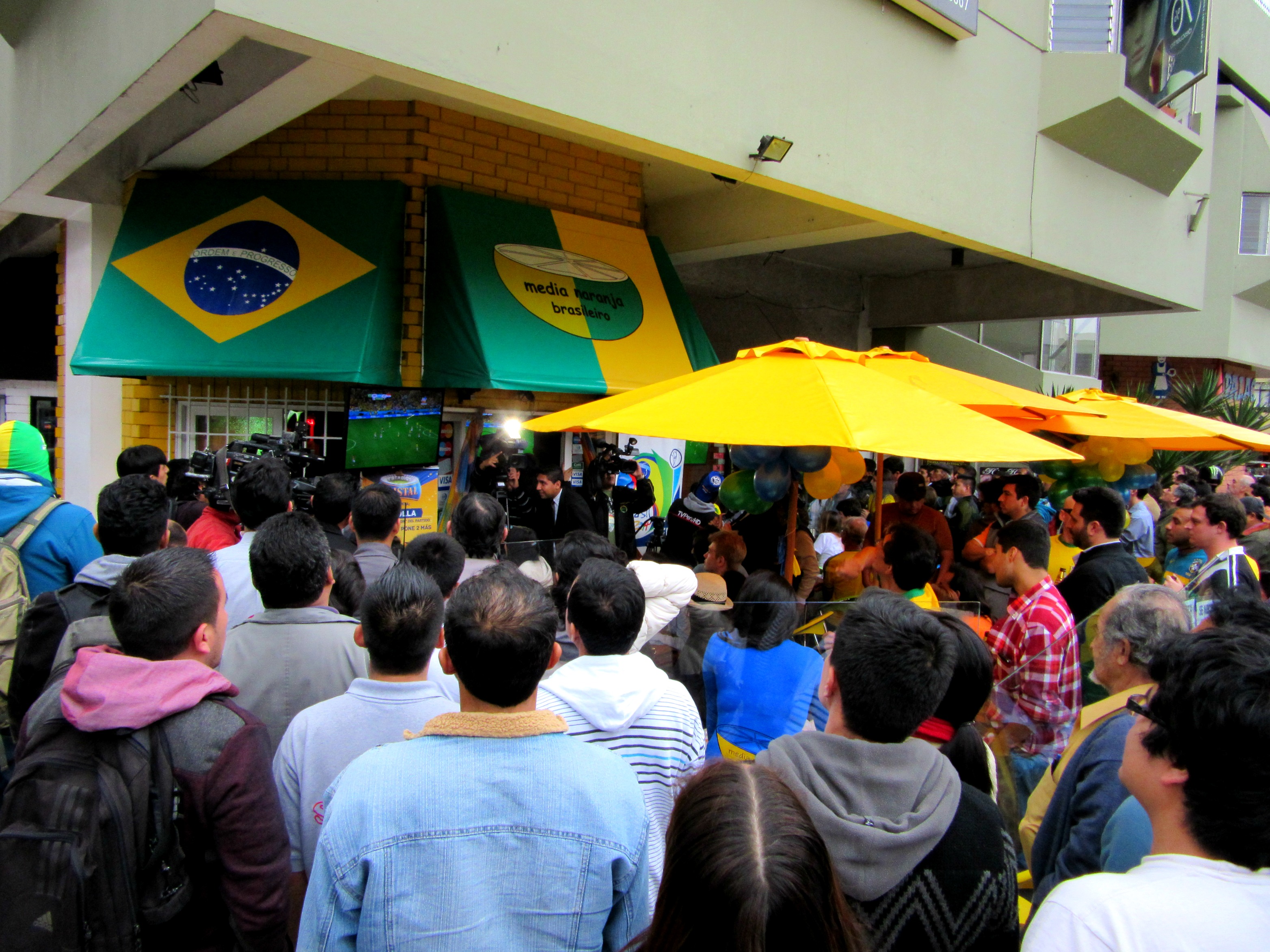 IMG_0045(1) Previous Next Published July 8, 2014 at 3128 × 2346 in Football Fever in Brazil Spilling out of bars on the street