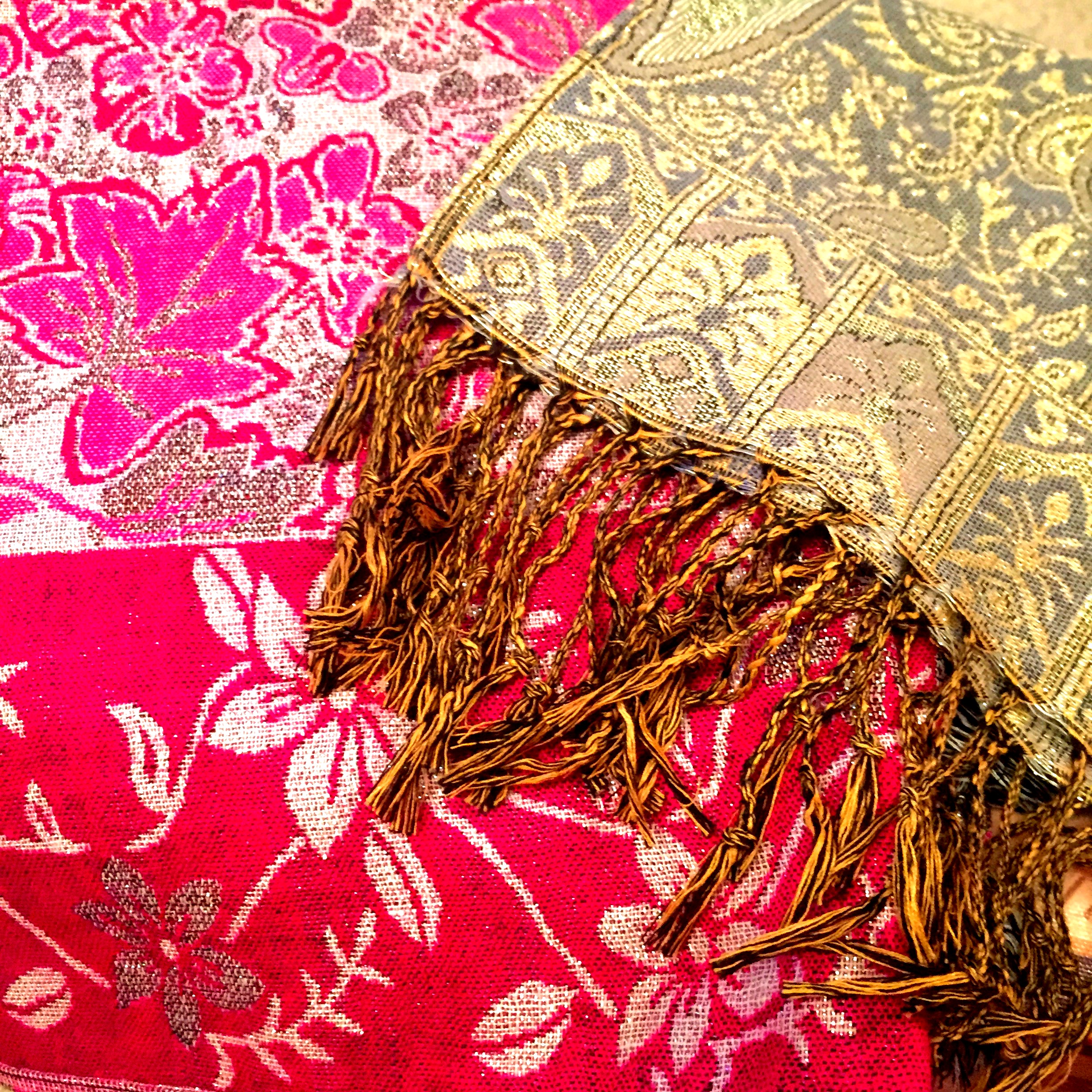 Since our trip to India last year my wardrobe has been gradually filling up with more and more pashminas. The bright colours, striking patterns and silky soft material of those I bought in India have given me a slight addiction and so these two new pashminas will go very nicely with my current collection.