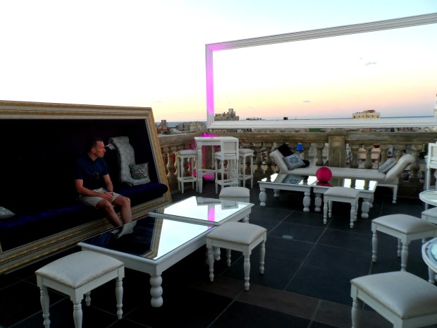 We stopped off at the rooftop bar for a drink before our meal and the modern luxurious setting, complete with chaise lounge and cosy blankets, was a stark contrast to the view looking out over the crumbling buildings.
