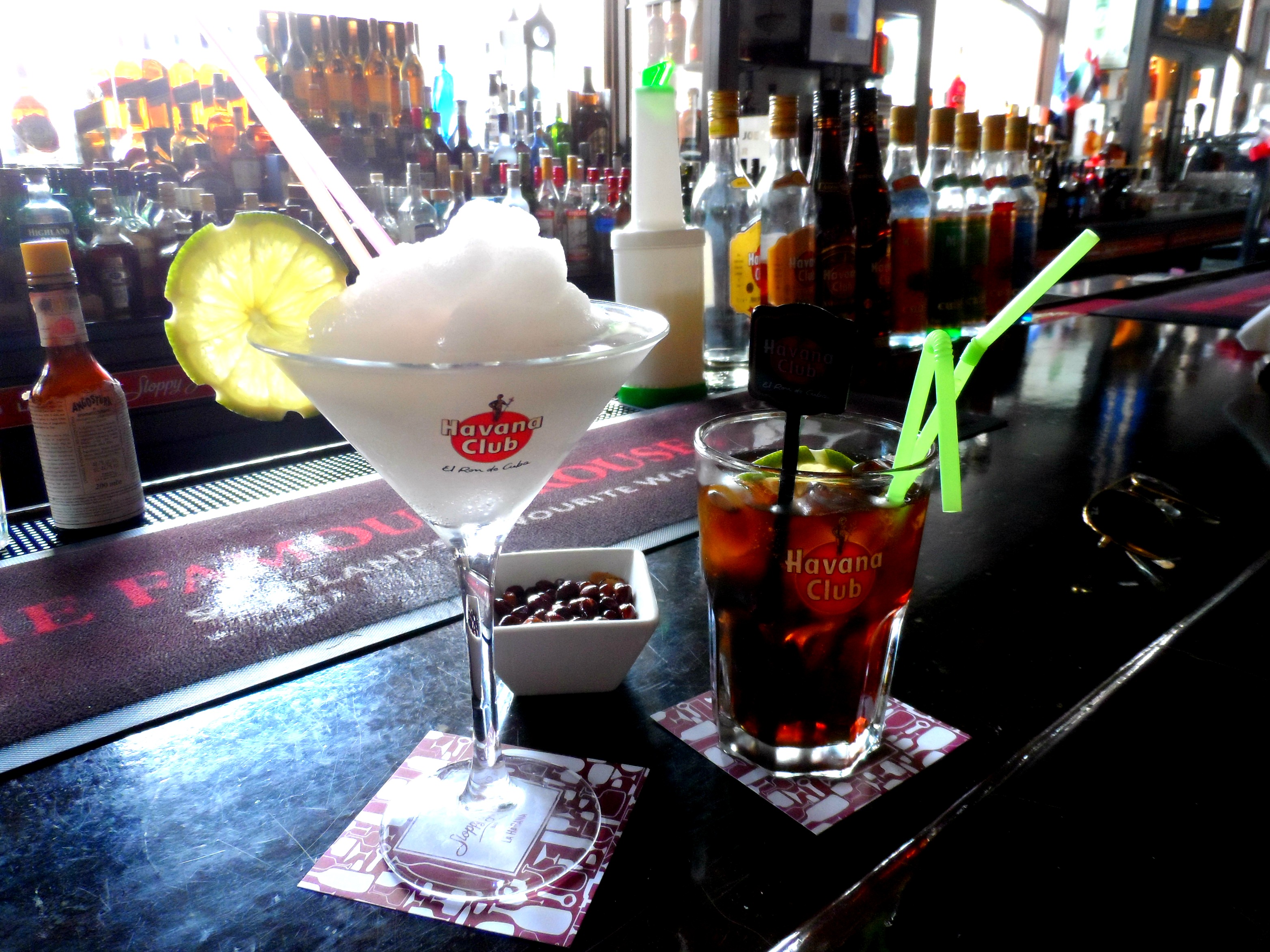 Just behind our hotel, Sloppy Joe’s made us feel like we’d stepped back in time to a gangster paradise with it’s saloon style doors, old black and white photos lining the walls, and the long mahogany bar full of a huge array of drinks.  I went for a classic original frozen daiquiri (mmmm) and Alex a Cuba Libre (super strong rum and coke).
