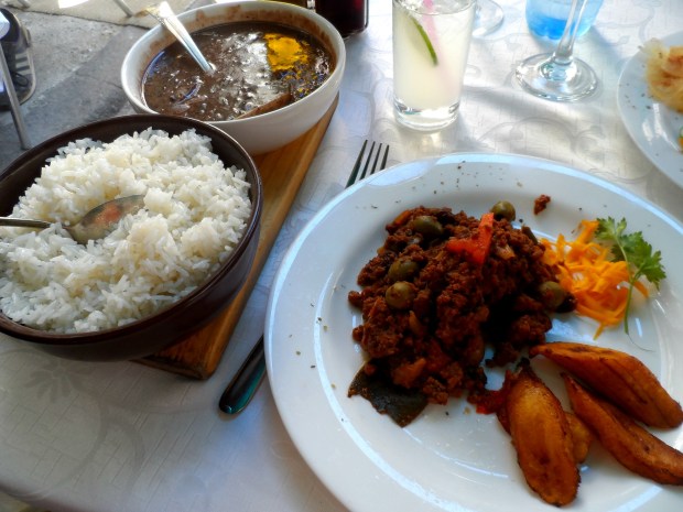 Being the place to go for Cuban cuisine, I wanted to sample as much of the local food as I could so, after a delicious starter of fish croquettes, I had the picadillo (mince meat) with soft sweet fried plantain and Mr Ayla had breaded fish with banana chips.  A side of black beans and rice (Moros y Cristianos) is served with every meal so no matter what takes your fancy on the menu, you’ll still get to try one of Cuba’s staple foods.