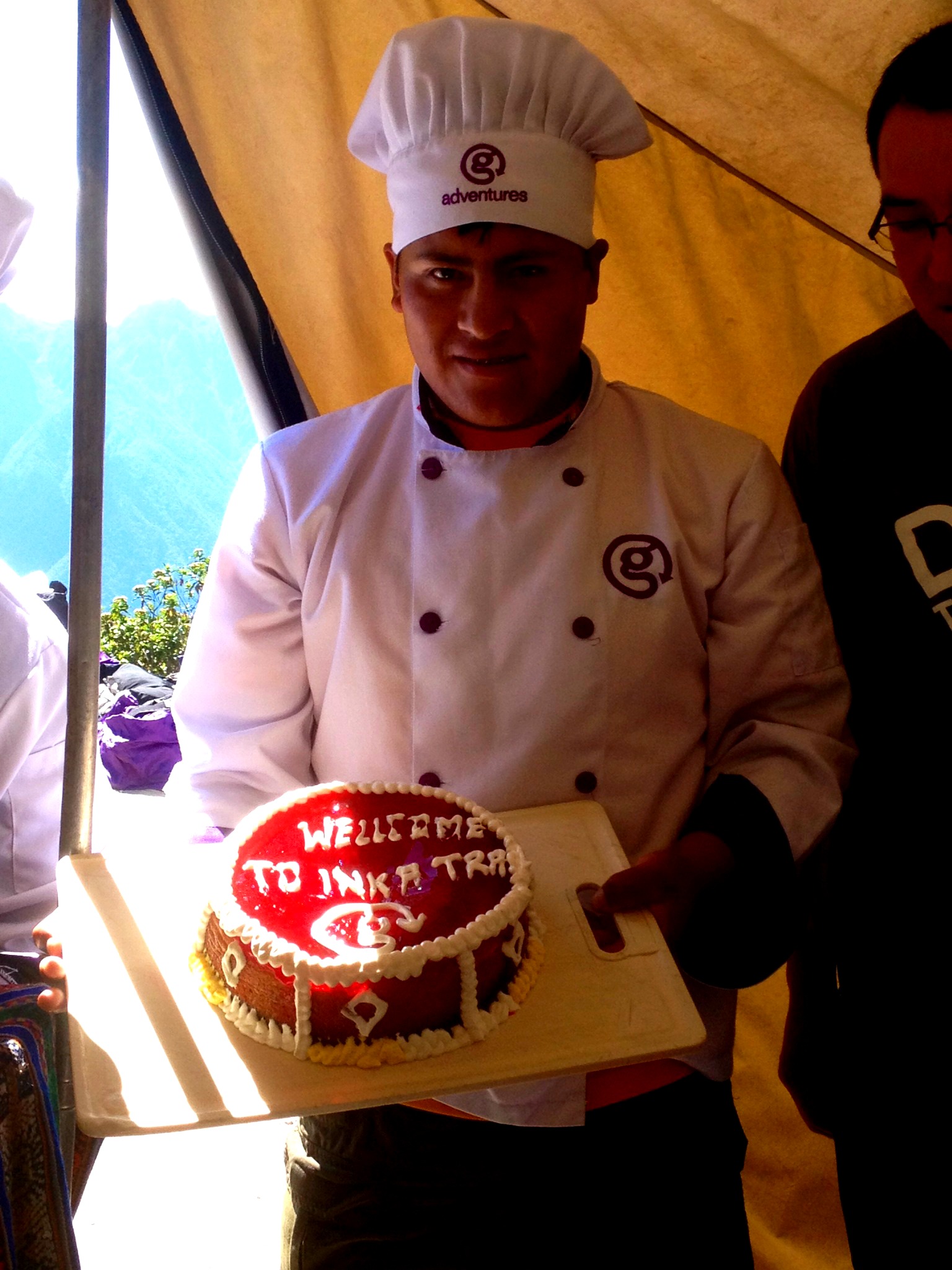 Food on the Inca Trail Previous Next Published June 6, 2015 at 1536 × 2048 in The Challenge of a Lifetime: Hiking the Inca Trail A celebratory cake