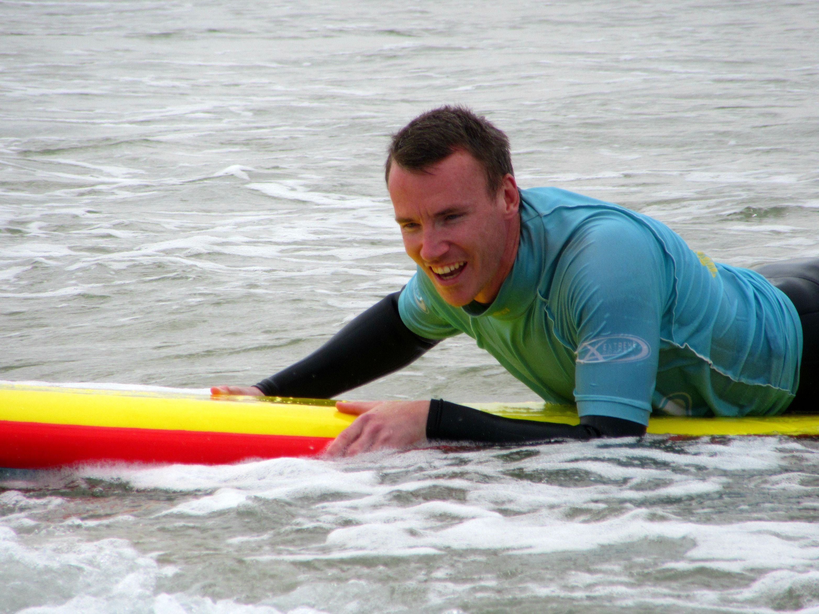 Even if it was only for a few short seconds his elation at eventually managing to get two feet on the board was obvious!
