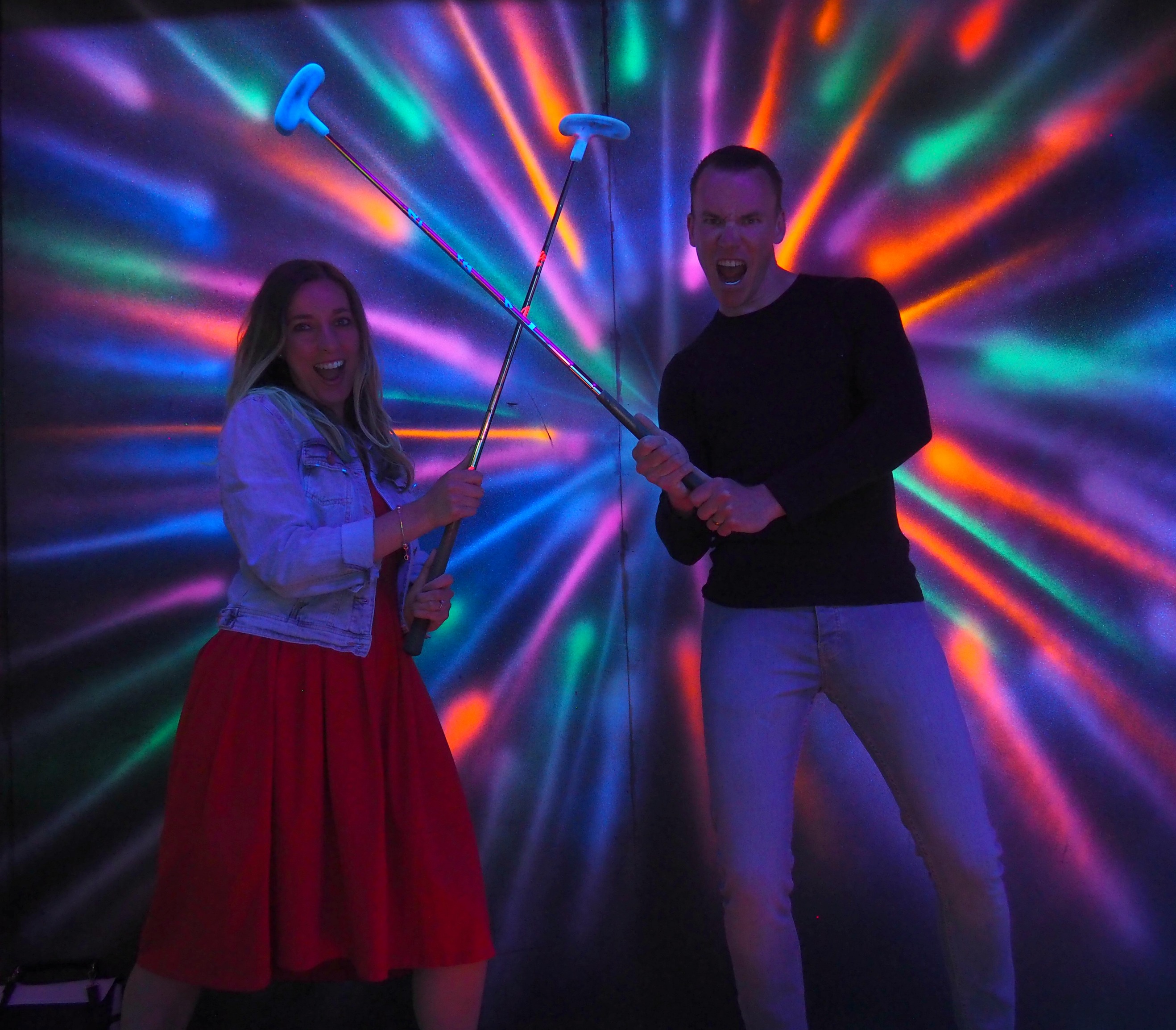Bright orange starfish bobbed past us in the air, giant dragons loomed over us and the patterns on the floor seemed to move of their own accord.  I tripped over at least 8 times and had many failed attempts at actually hitting the golf ball because everything was so out of proportion thanks to the 3D glasses.  This place is just so completely wacky and fun; there’s even a colourful disco wall which of course was the perfect opportunity for a mini photo shoot!