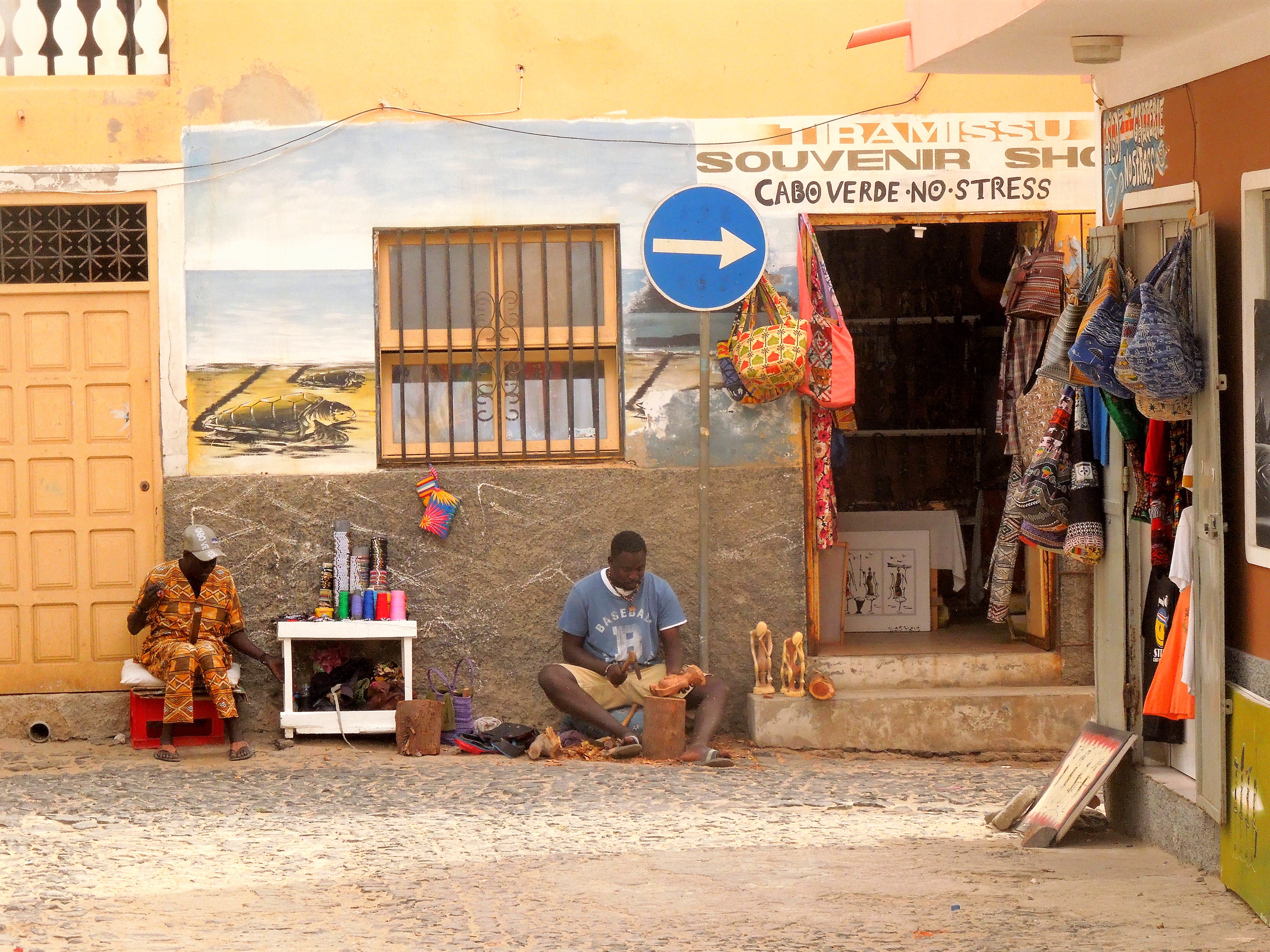 We then made a stop at a small local village, one of the oldest settlements on the island, for a refreshing drink – much needed after a morning exploring under the heat of the African sunshine – and had a browse in the little trinket shops as well as the chance to try cachupa, a traditional Cape Verdean stew dish of vegetables and fish.  We did a bit of bartering with the friendly smiley locals and Evie made friends with a lady dressed in her finest most colourful African attire.