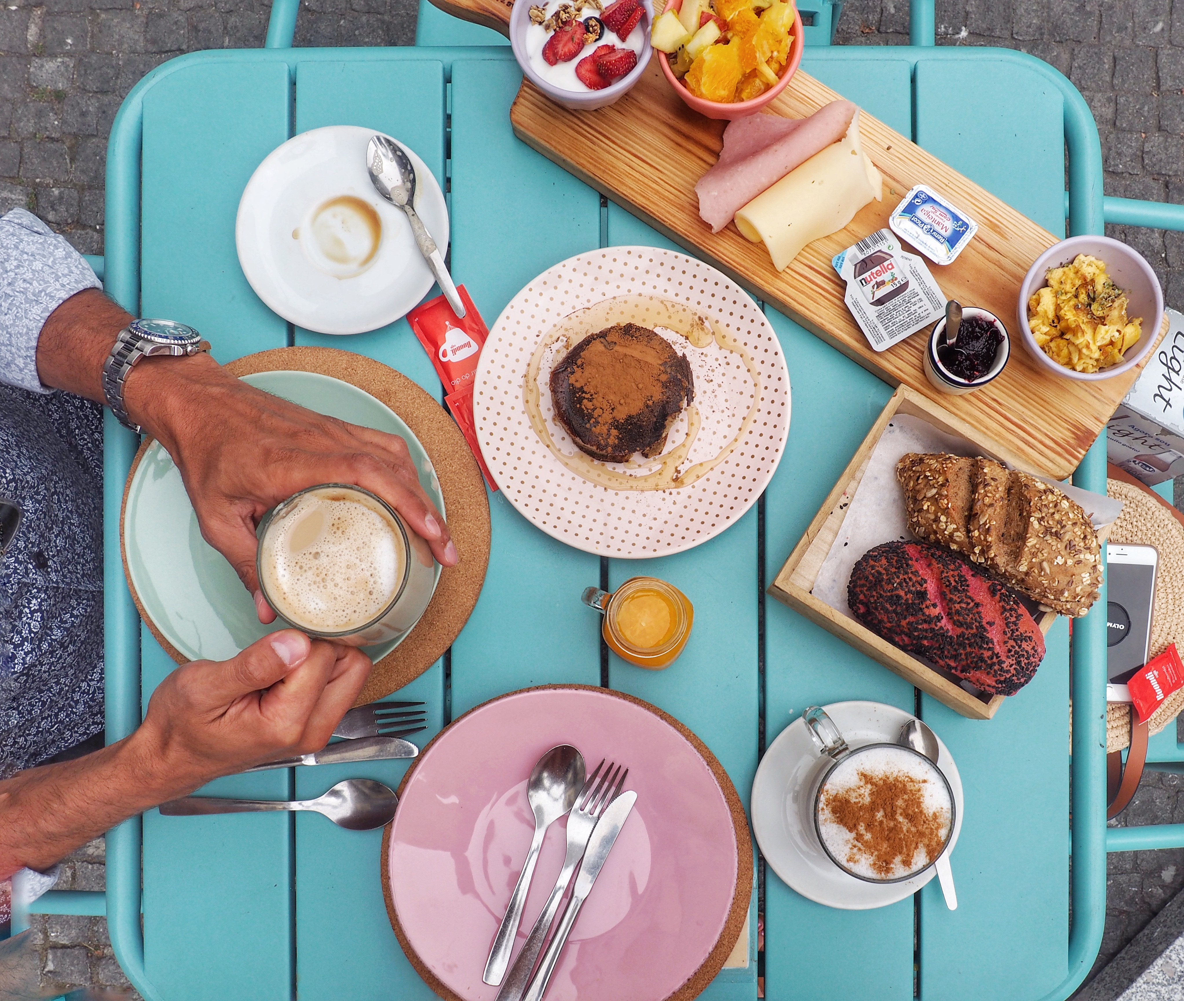 An adorable little pavement café near the centre of the city, with ample amounts of cakes and baked goods to choose from inside. For once I didn’t go for cake (shock horror!) but instead got the €10 brunch which is enough to share between two people and includes a board of fresh bread, meats, cheeses, jams, eggs, fruit and yoghurt, and delicious oat pancakes. The cappuccino had a sprinkling of cinnamon on top, the purest most fresh orange juice came in a cute little glass jar and the pink beetroot bread made this an extremely colourful and Instagrammable brunch.