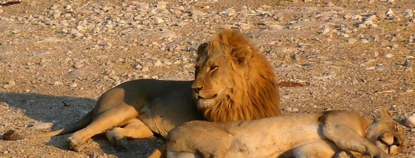 This photo of a male and female lion relaxing together was taken in Etosha National Park in Namibia. Even though Etosha is not as well known as some of the other African national parks, it was one of our favourites as the animals were in abundance.